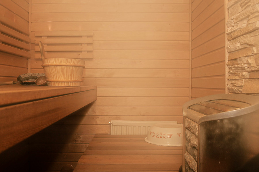 Pomieszczenie zwane sauną, zbudowane jest całkowicie z drewna. Za pomocą pieca podgrzewane jest zwykle do temperatury od 80 ° C do 100 ° C, dla suchego powietrza, temperatura może osiągnąć nawet 130 ° C.